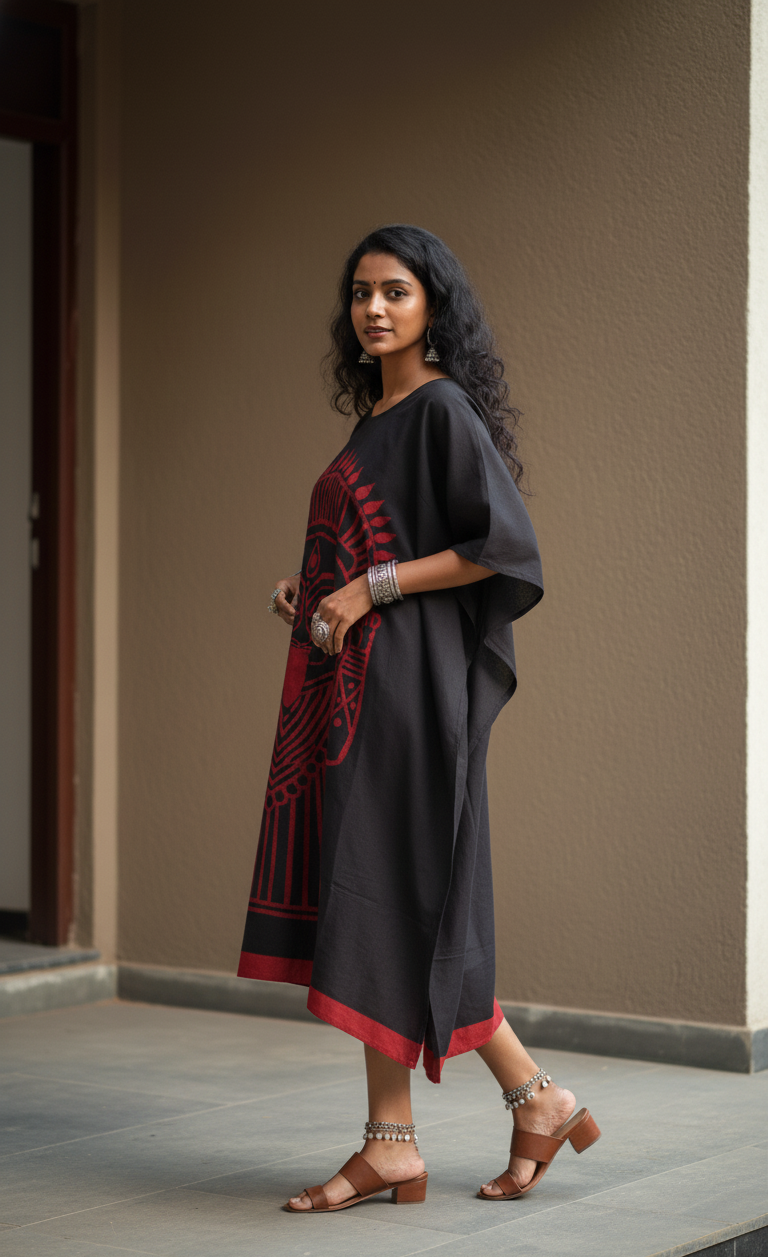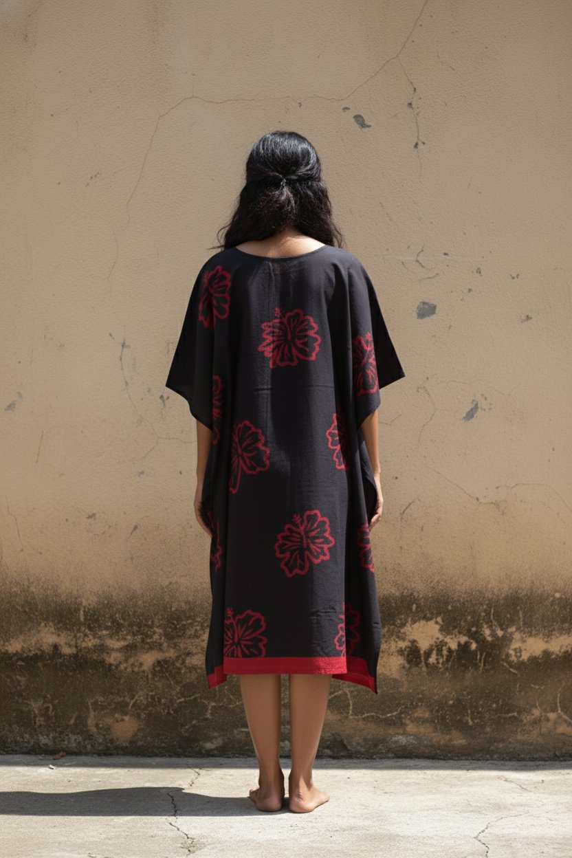 Kaali Red Handpainted Batik Art Pure Cotton Kaftan