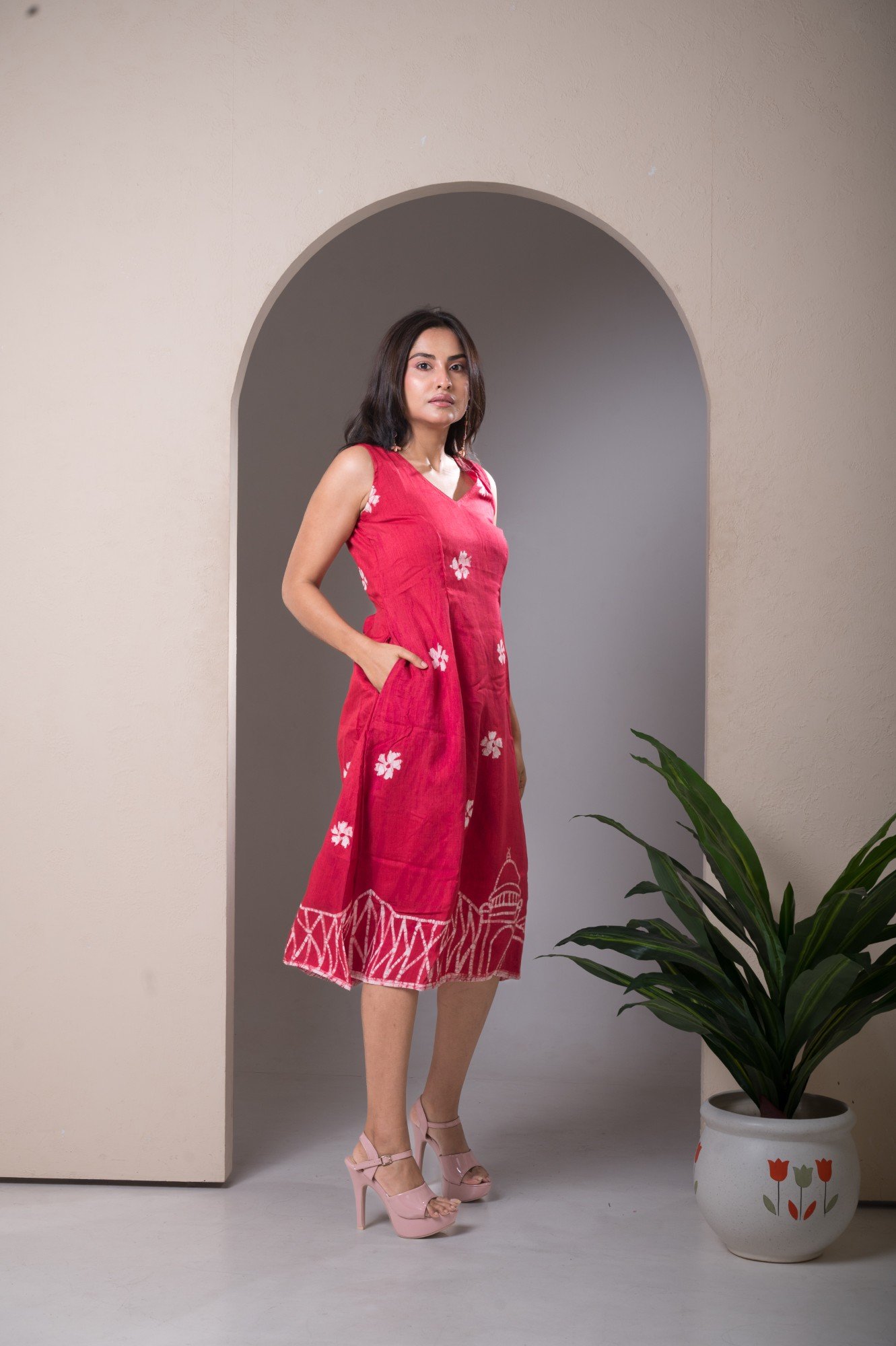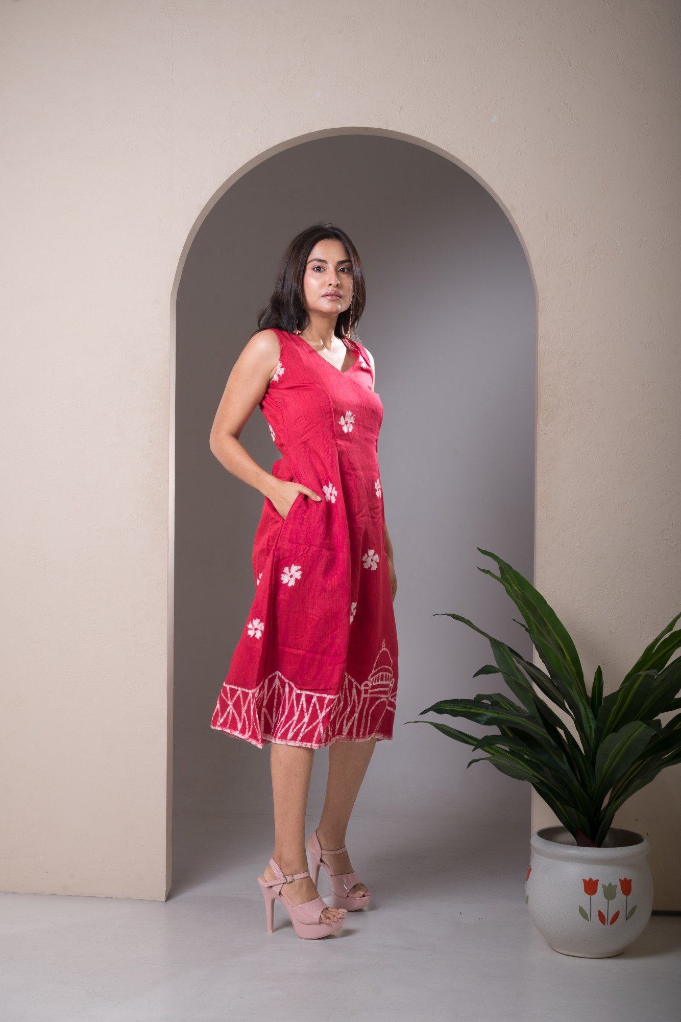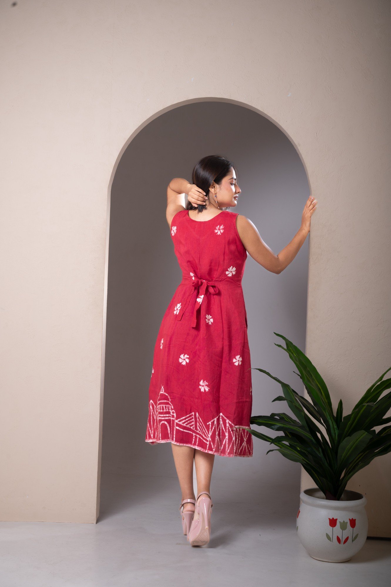 Kolkata Hand Batik Magenta Silk Belt Dress