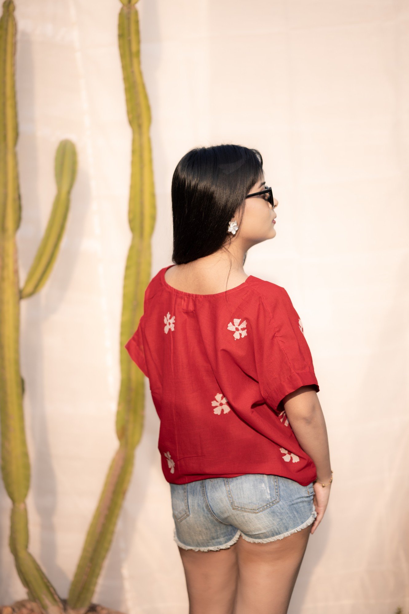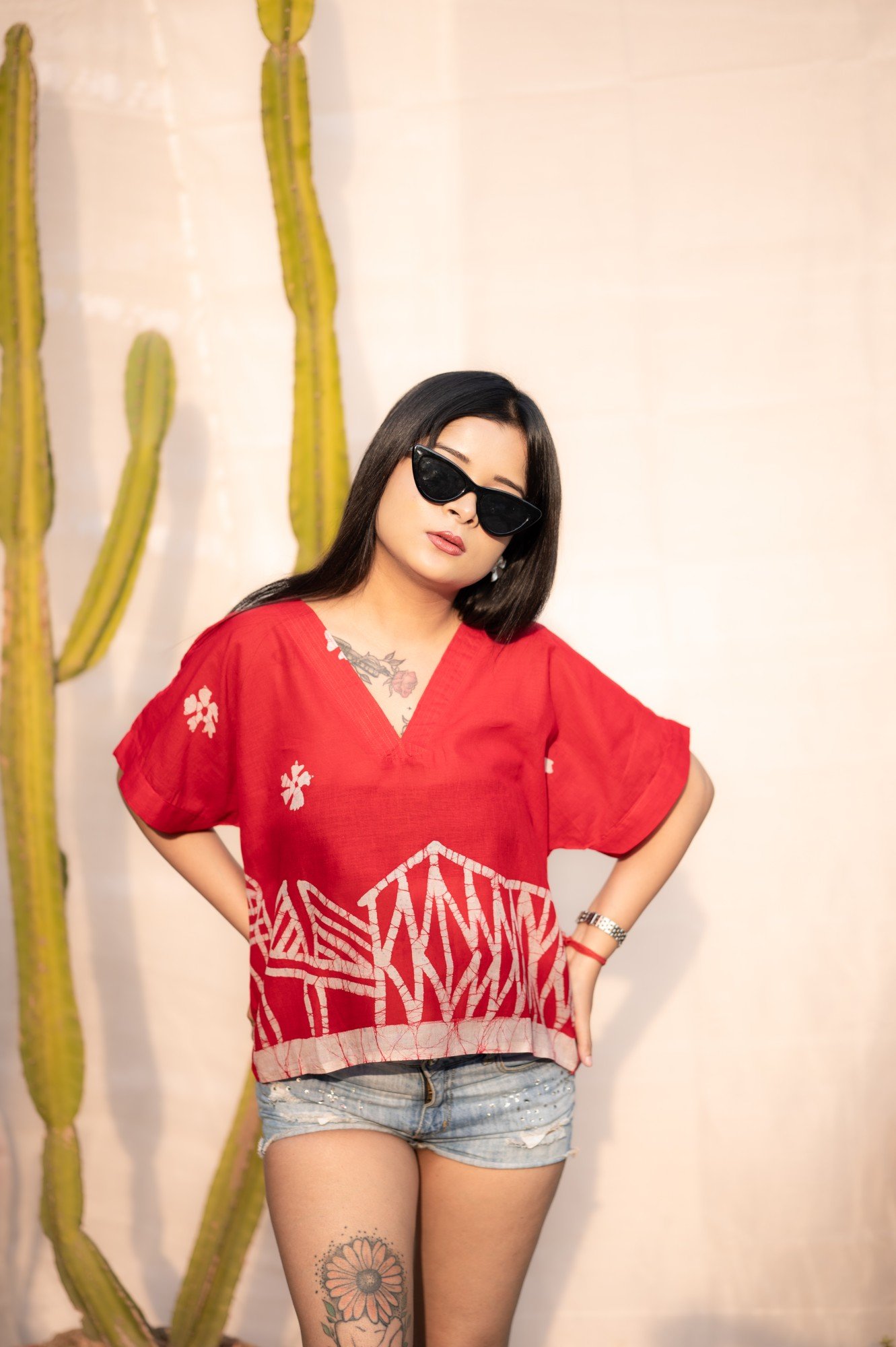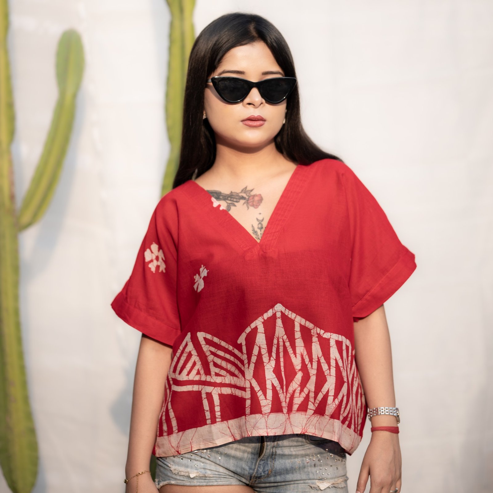 Kolkata Hand-painted Batik Art Pure Cotton Crop Top (Red)