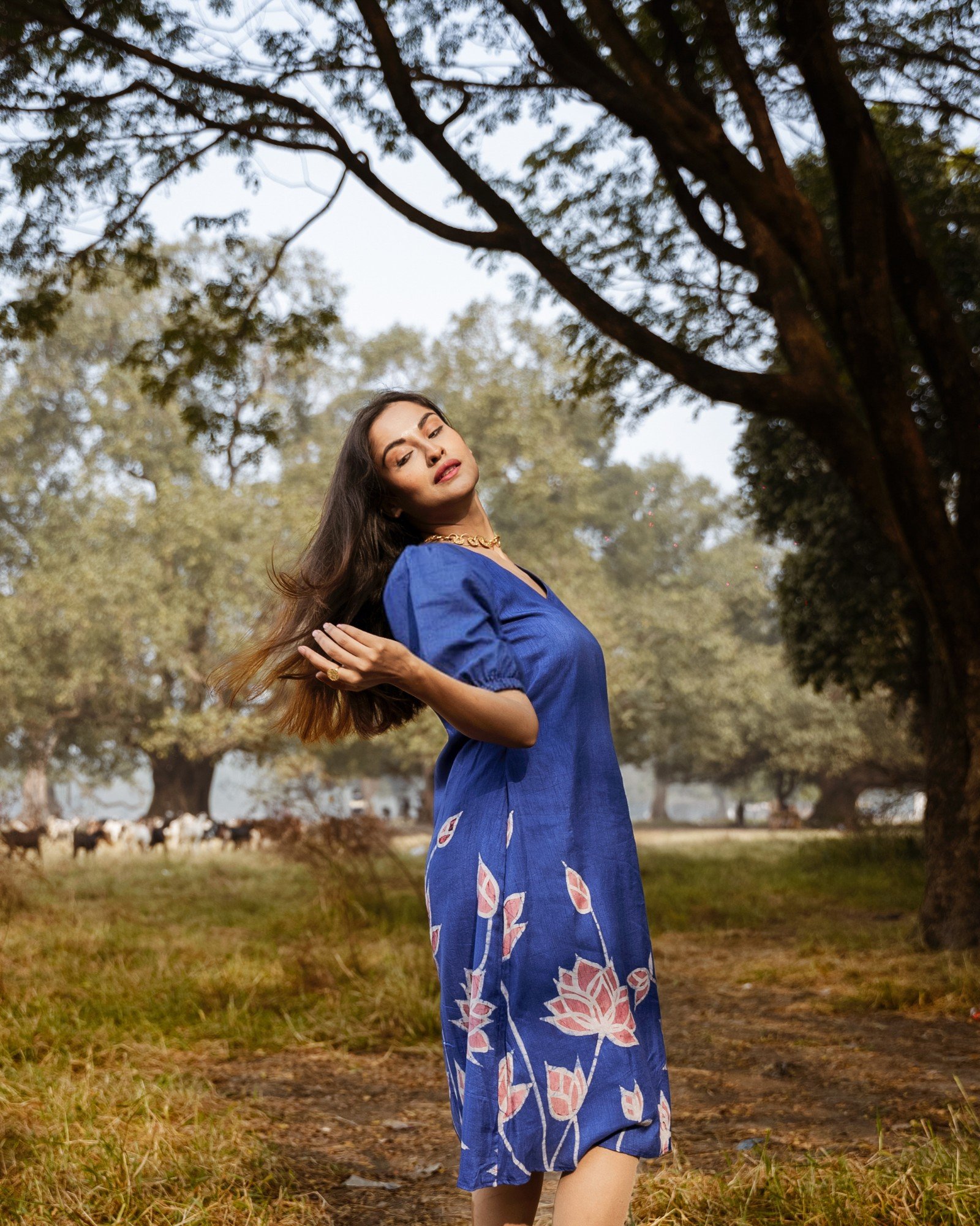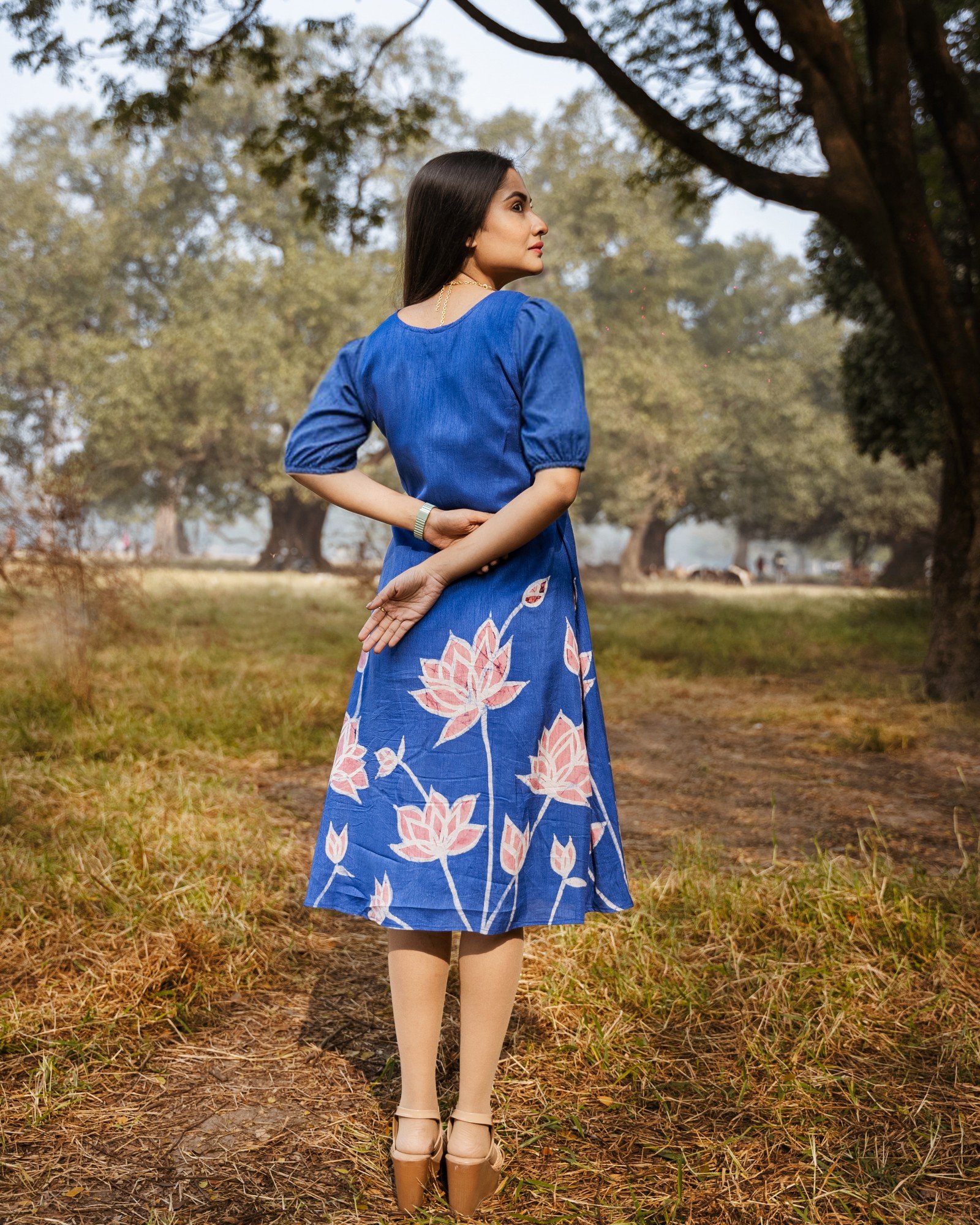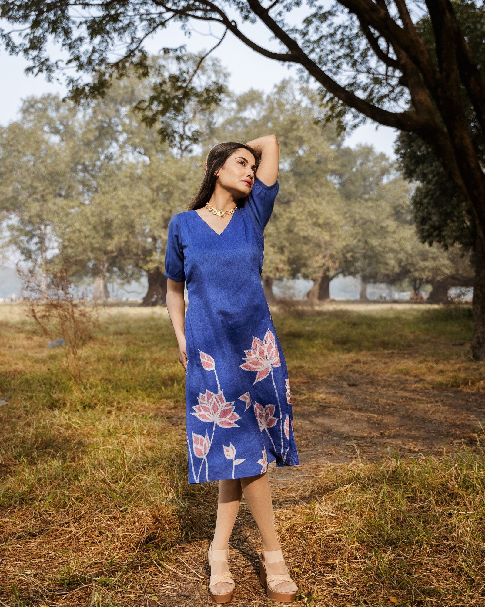 Lotus Pond Silk Batik Art Dress with Sleeves