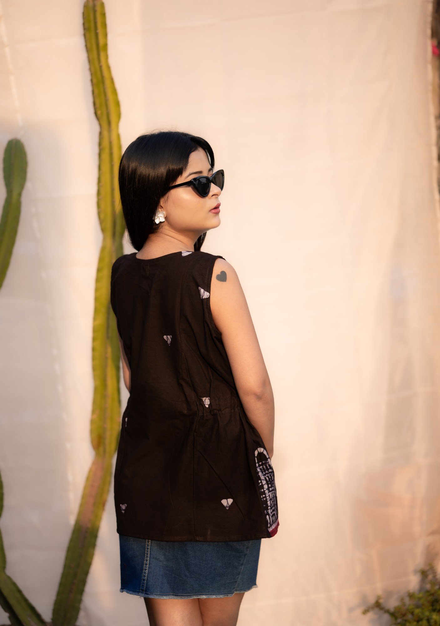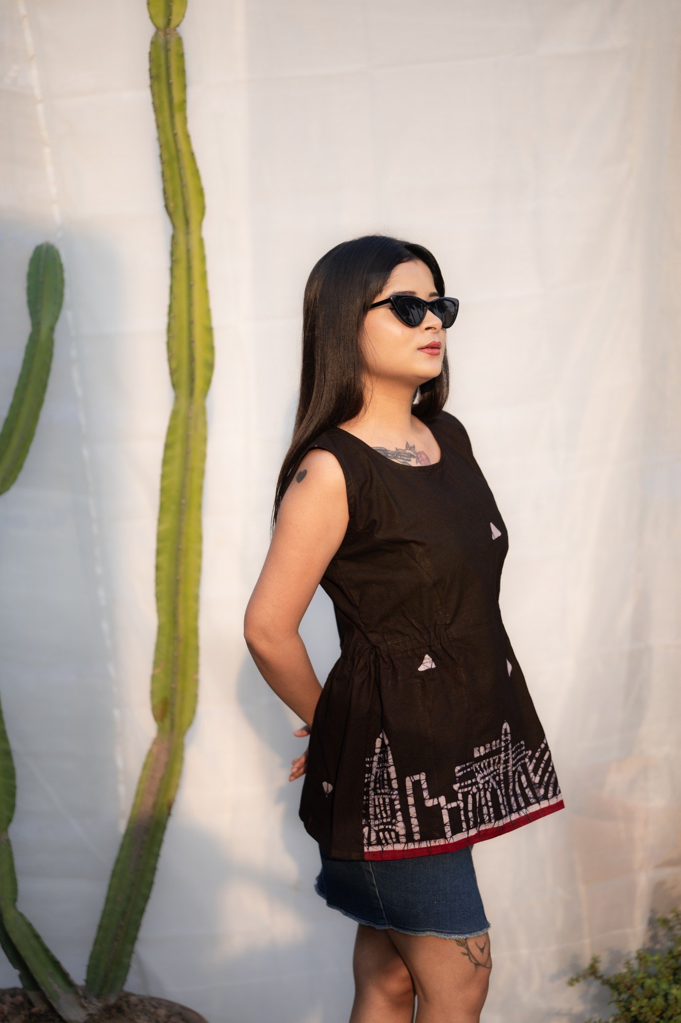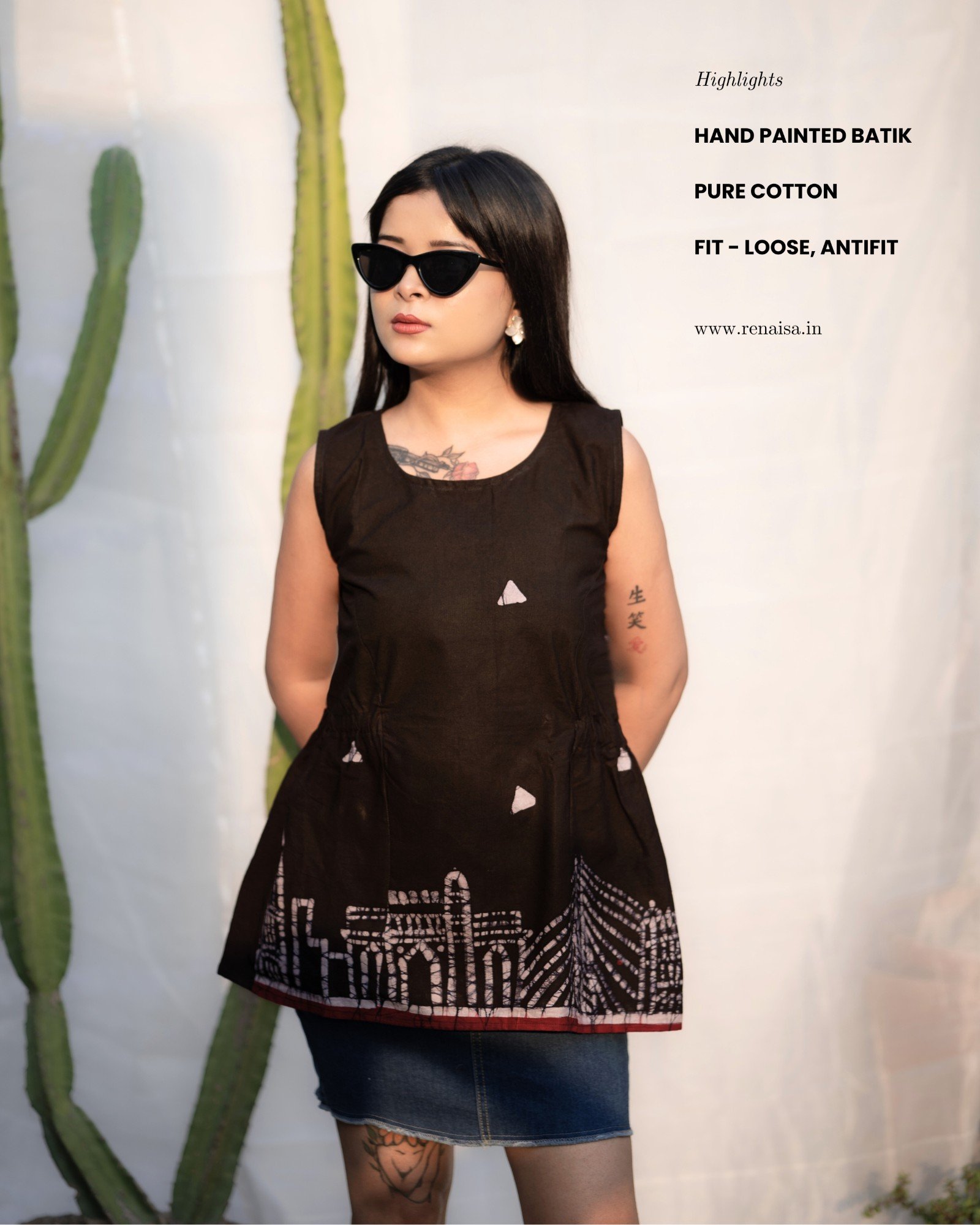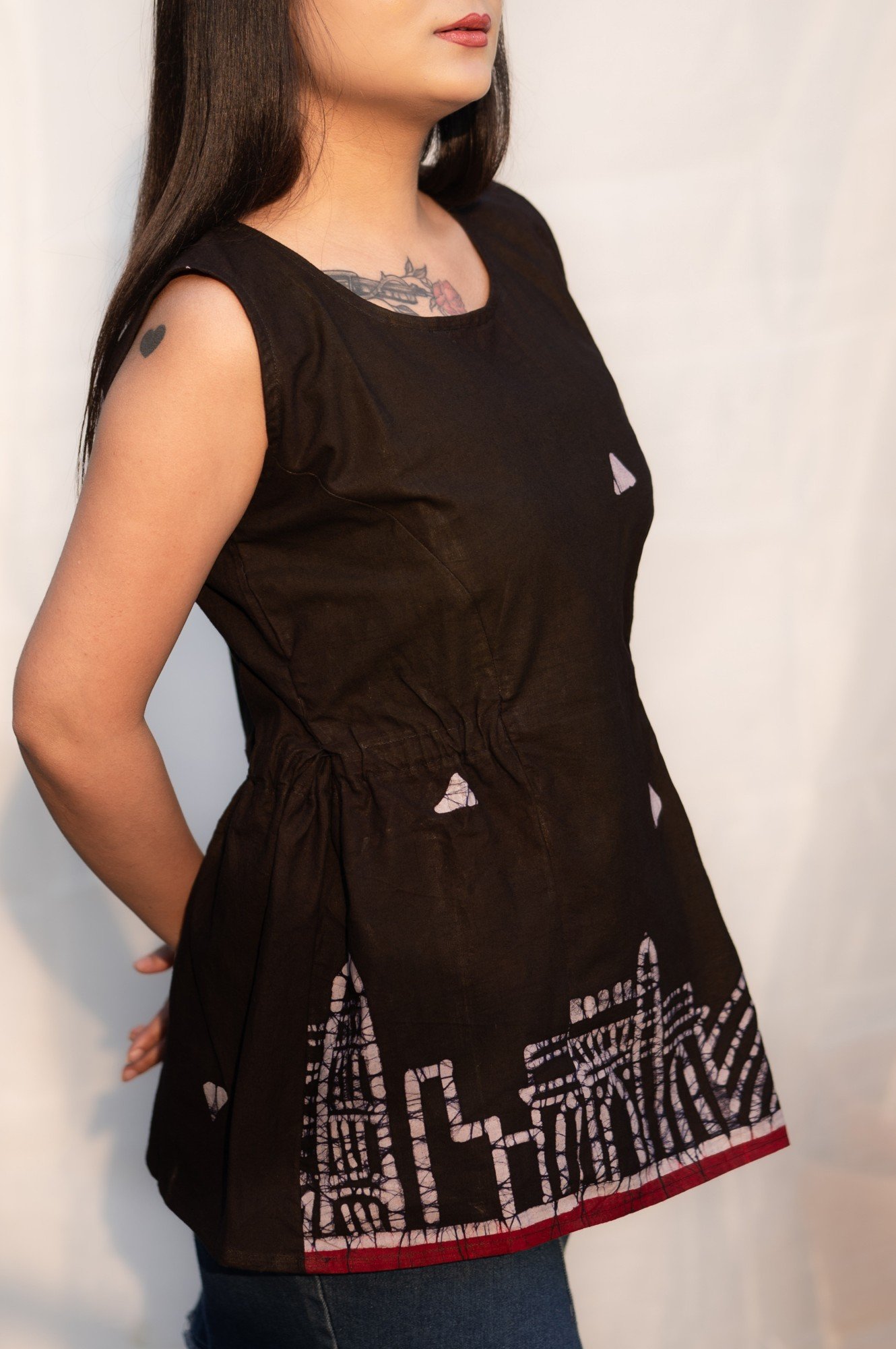 Mumbai Hand Painted batik Sleeveless Pure Cotton Top (Black)